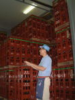 静岡市の西側に位置する志太地区は、大井川の周辺にあたり、静岡県でも 銘酒蔵が集中して存在する地域として有名です。南アルプスの伏流となる 大井川水系の仕込み水は、口当たりがとてもやわらかな軟水。 その志太地区の藤枝市にある喜久醉(きくよい)の青島酒造は、 750石あまりの製造数ながら、手造りと徹底した品質管理に秀でた 酒蔵と言えましょう。 頑固なまでに静岡酵母のみを使用し、貯蔵はすべて冷蔵管理。 普通酒も広大な冷蔵室にタンクと瓶でしっかりと保管されていました。 長く南部杜氏の富山初雄氏が務めておられましたが、2003年より 蔵元の長男である青島伝三郎さんと若いスタッフ4人の、静岡型の酒造りを忠実に 実践する若きプロ集団に任されています。彼らは、とにかく基本を大切にする ことが信条で、私が訪れたのは8月の終わり頃でしたが、日本酒のP箱を 一つ一つ丁寧に手洗いする様子を見るにつけ、冬の仕事への信頼性が 一気に高まると言うものです。 酒質の特徴は、香りが穏やかで酸が少なく、口当たりがなめらか。 静岡型吟醸の忠実な担い手として、大吟醸から普通酒に至るまで “喜久醉らしさ”がアイデンテティとして感じ取れるお酒です。 |