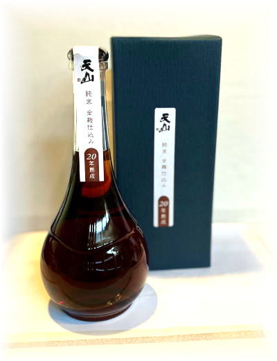 この天山は全麹仕込みで醸された純米酒を20年熟成させました。 色は澄みきった焦げ茶色、黄金色。