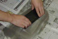 砥石の調整 それから、測定定規で砥面を調べてください。人造砥石は砥面が減りやすいのでこまめにチェックしてください。もし、凸凹があれば砥面修正をし、光沢が出るまで名倉をかけてください。 私の砥面修正の仕方は、ガラス板に水をたらし、金剛砂をまいて、その上で砥石を右回り左回りと円を描くように砥石の重さだけで力を入れないでこすります。へこんだとこがなくなれば、あと、名倉をかけます。他には、テーブルの上に400番くらいの耐水ペーパーに水をかけて、前後にこする方法もあります。 本山砥石のような天然砥石は、左右、前後に厚みが平均していないのが多いので、砥石のうらをコンクリート等のところで削って、平均にしておきます。また、砥石の座り具合もガタつかないように調整しておいてください。砥石の裏にゴム板などを貼り付けるといいですね。 名倉 名倉砥とは天然砥石の一つです。一般に名倉と呼ばれるものには長崎県対馬産の「黒名倉(別名:細名倉)」、愛知県三河産の「白名倉(別名:中名倉)」があります。 ![]() 現在私が使っている名倉です。 どこの名倉かよく知りません m(__)m 次の、「準備」に進みましょう |