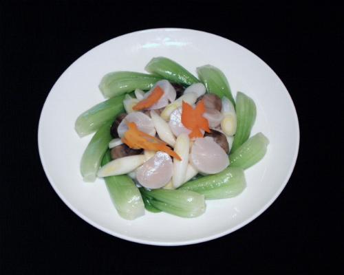 油の使用を控え、旬の野菜とホタテを炒めたあっさり味の広東料理です。
