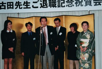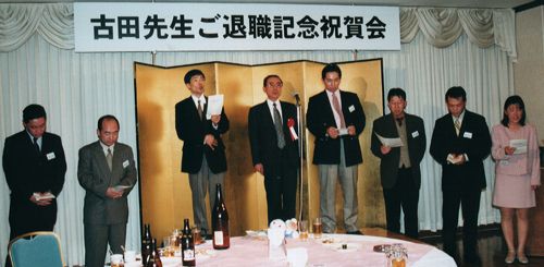 古田先生へお祝いの言葉を頂いた代表の皆さん(その1) | ||
